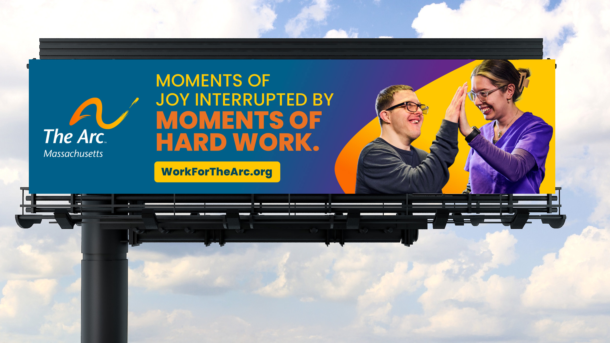 Our recruitment campaign theme, “work with all your heart,” helped give all The Arc chapters throughout Massachusetts a shared voice, serving as an inspiring foundation to tell our caregiving stories. An integrated online and billboard campaign in strategic locations throughout Massachusetts helps us showcase the emotional benefits of working for The Arc. A shared website shepherds searches to chapter locations, streamlining operations and applications. The results? A 29% lift in brand recognition following campaign launch. 36 million targeted impressions to date. 187 thousand visitors to the campaign website, and a 48% lift in job applications year over year during the months of the campaign.